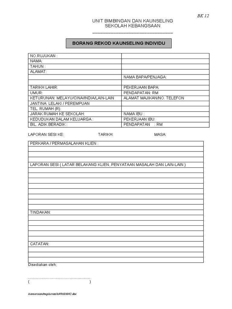Borang Ubk 12 Borang Rekod Sesi Kaunseling Individu Pdf