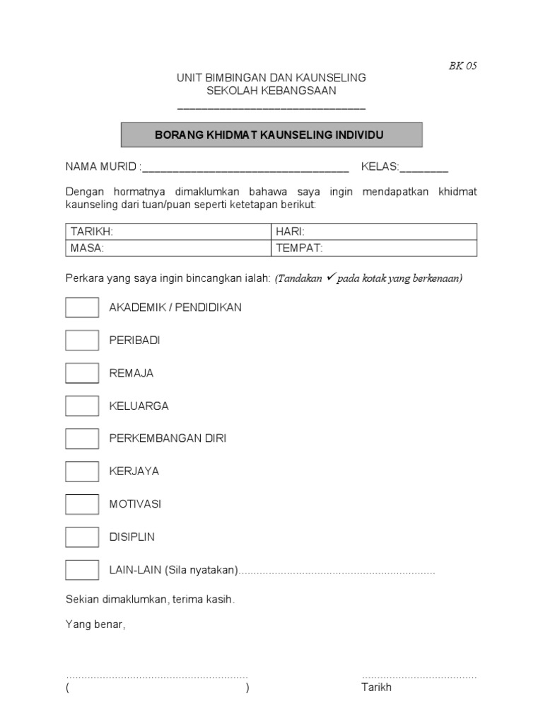 Borang Ubk 05 Borang Permohonan Khidmat Kaunseling Pdf
